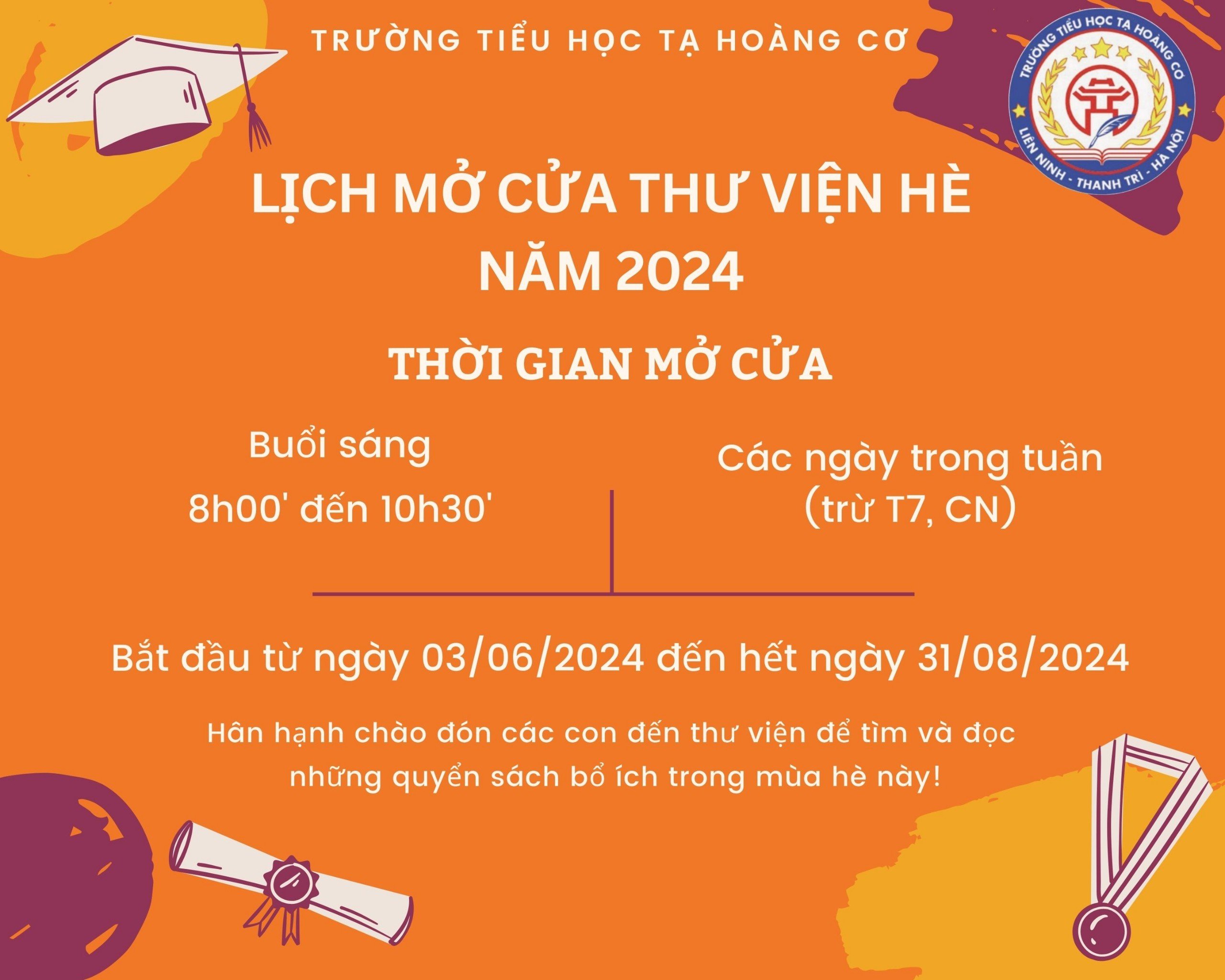 Lịch mở cửa thư viện hè năm 2024