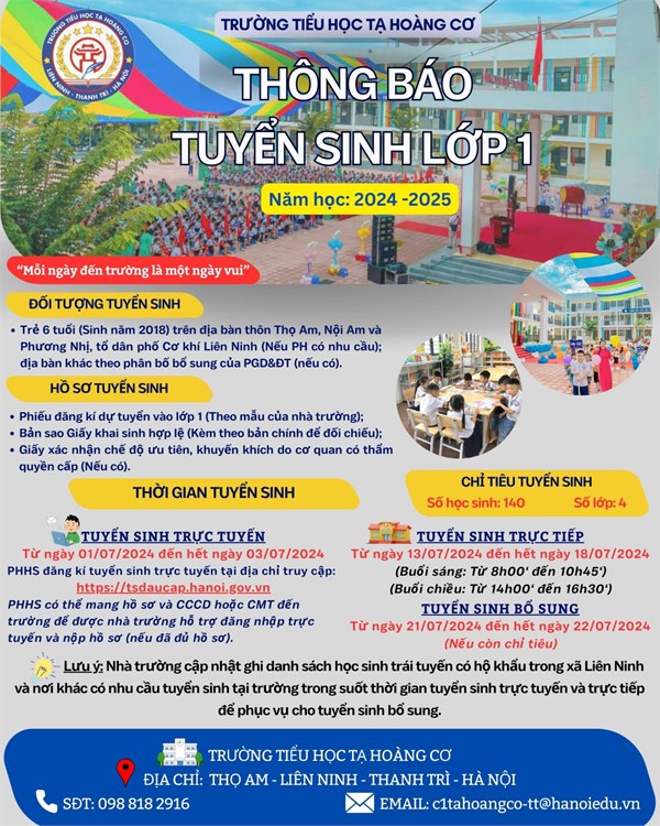 Thông báo tuyển sinh lớp 1 năm học 2024-2025